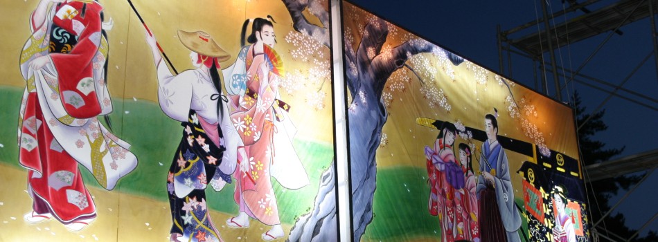 湯沢の「七夕絵どうろうまつり」は、秋田藩佐竹南家七代目義安公に、京都の公卿鷹司家から「おこし入れ」された姫君が、京都への郷愁やるかたなき想いを五色の短冊に託し、青竹に飾りつけたのが始まりといわれています。